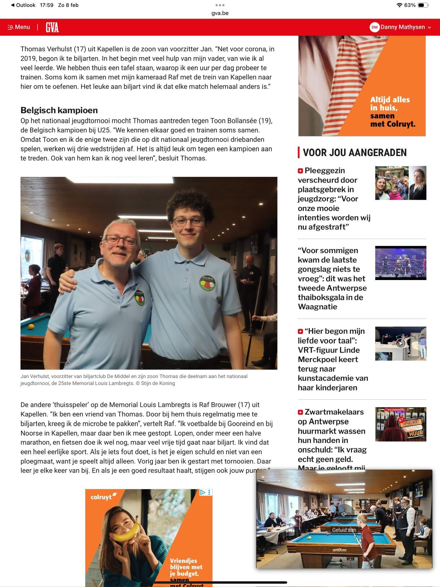 Ronny Mathysen plaatst zich voor het Belgisch Kampioenschap ereklasse in de discipline kader 71/2.